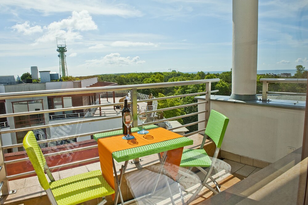 Od plaży w jastarni z tarasem i bezpośrednim widokiem na morze.